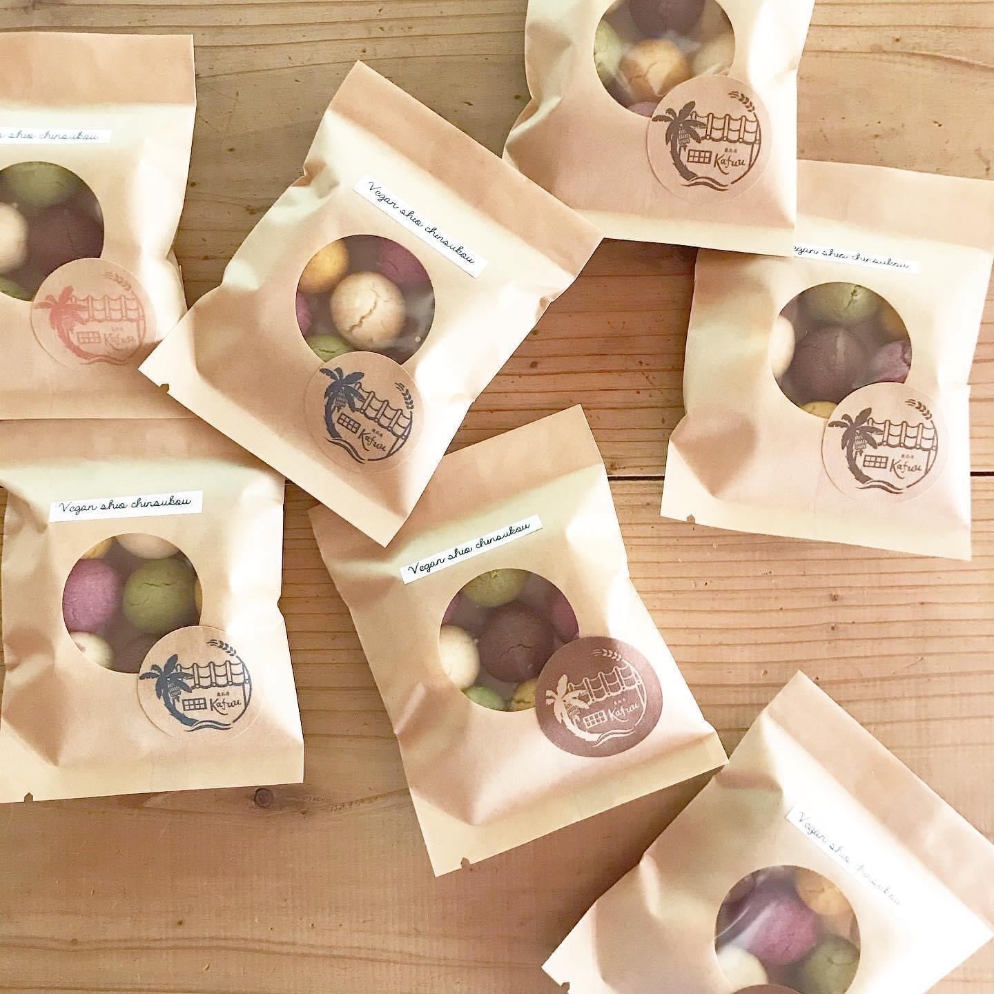 原材料:小麦粉・きび糖・黒糖・アーモンドプードル・ココナッツ・かぼちゃパウダー・抹茶・紫芋パウダー・ココア・沖縄の自然塩